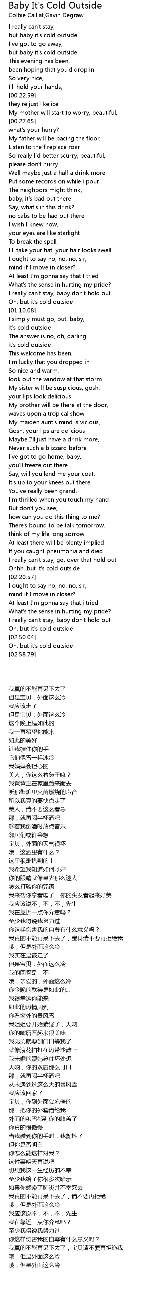 Maybe Just Go Outside Baby Its Cold Outside Lyrics.