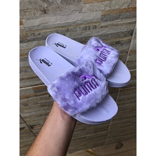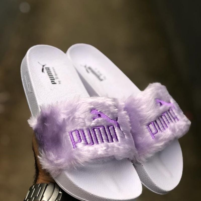 PUMA BY RIHANNA LEADCAT FENTY Grey Slides Fur Slide Top Deal. Ive barely worn them really only around the house as slippers because theyre way to big on me. Home Puma x Rihanna Fenty Purple Slides.